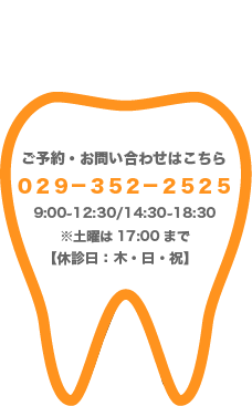 まずはお電話にてご予約をお願いします。症状や希望する日時をお聞かせ下さい。耳の不自由な方は、FAX(029-352-2552)でのお申し込みも可能です。その際、印刷が出来る方は診療申込書.pdfを印刷後、必要事項をご記入の上、FAXにてお申し込み下さい。