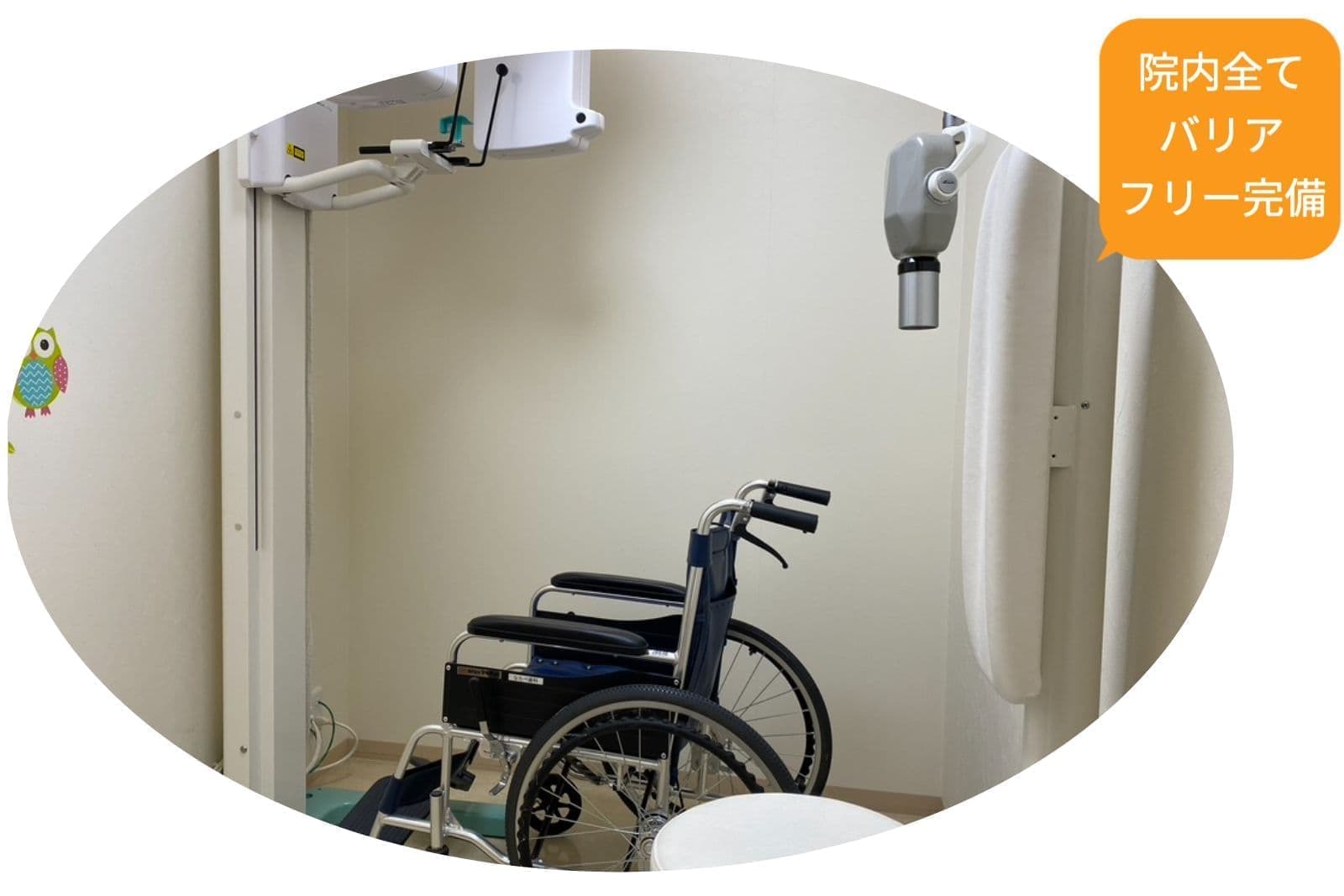 当医院ではエントランスから自動ドアになっており、車イスの方でも安心してご利用頂けるようなバリアフリーの環境が整っております。車イスのままでレントゲン室に入る事が出来、診察室も個室となっているので、車イスを横につけて移乗する事も出来ます。